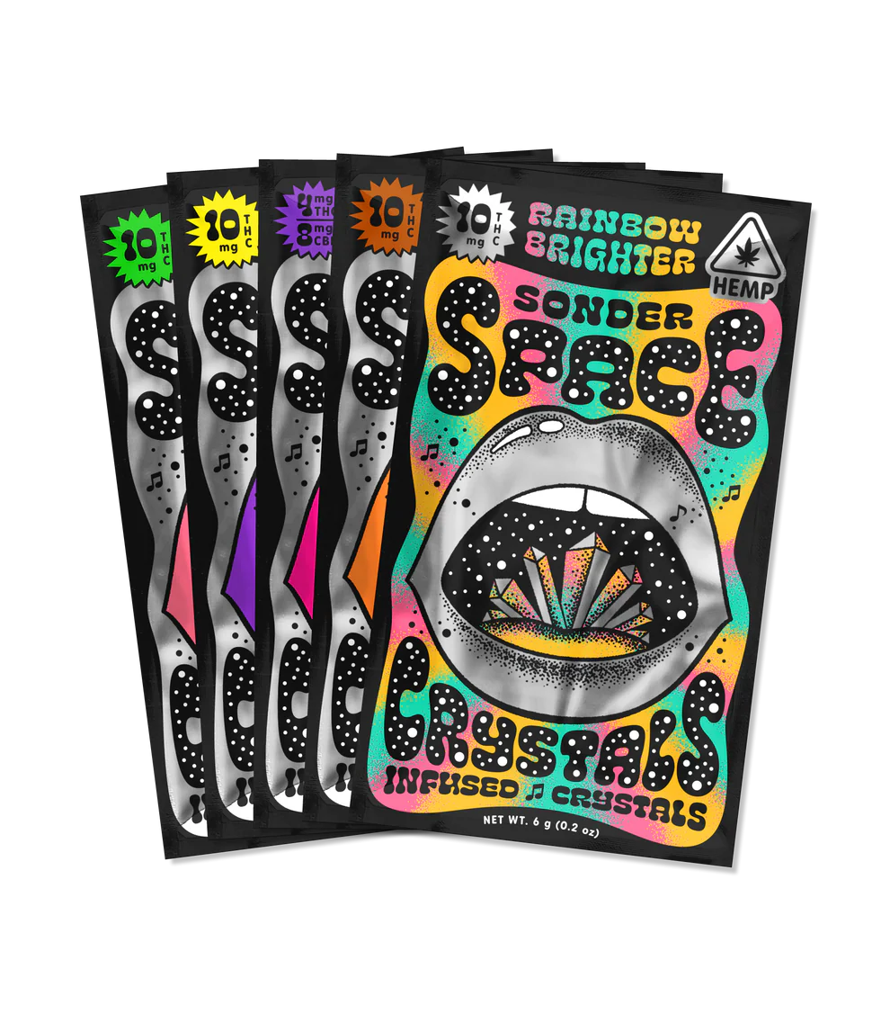 Space Crystals: An extraordinary line of Infused Popping Crystals, available in a variety of sophisticated flavors. Featuring Sublingual Crystal Technology™ for faster onset, Space Crystals are an explosion of flavor on your tongue, serving a gentle, full-spectrum body high with a sparkly head high.